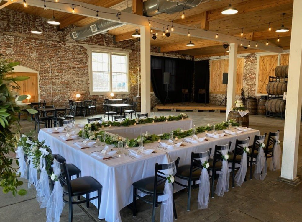 Although the building is old, it has been newly renovated and modernized with a focus on 1920s art deco style with mosaic tiles and large glass garage doors. The โTap Roomโ, perfect for weddings, has a rustic feel with barrels, string lights and old brick.