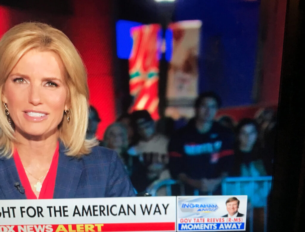 Later that night, I attended the live broadcast of FOX News’ Laura Ingraham Show on campus. I was photographed behind her in the broadcast.