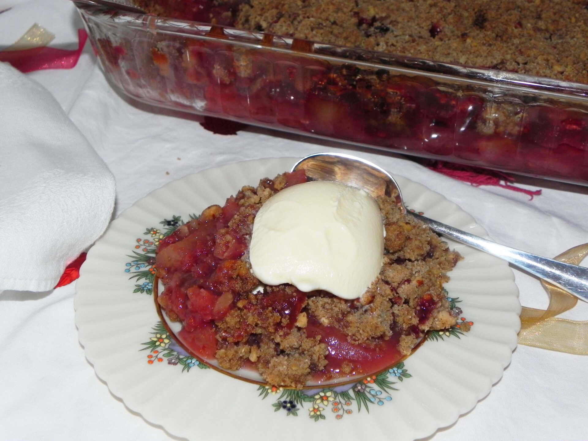 Here’s a terrific fruit crisp made with matzo meal. The cranberries turn the fruit a beautiful deep red.