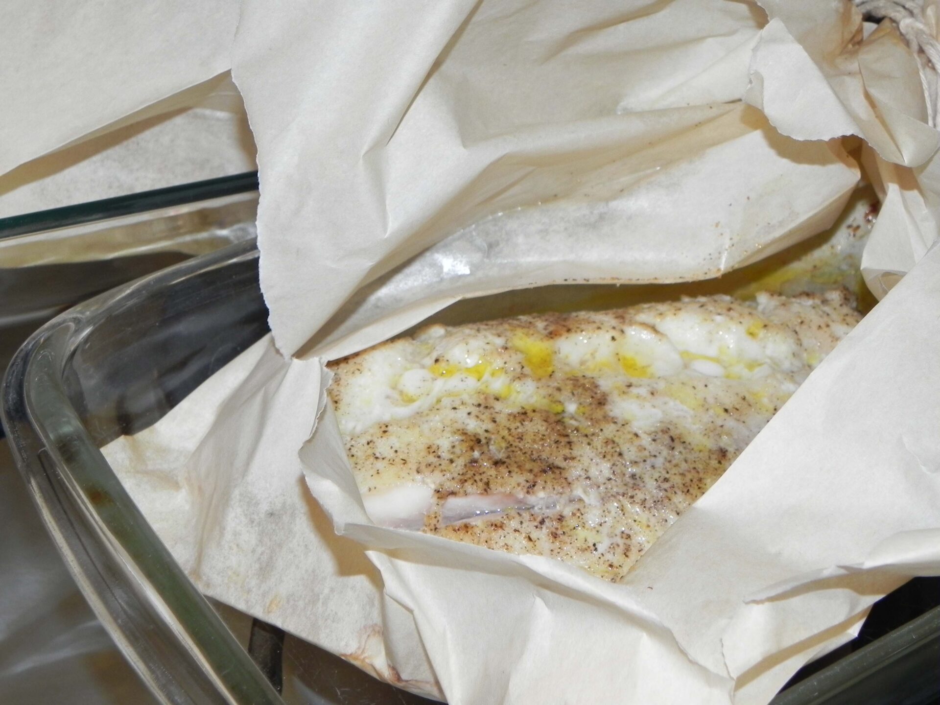 Prepare red snapper by drizzling all over with the Tuscan herbs-infused olive oil. Dust with salt, pepper and garlic powder. Position the prepped fish in oven parchment bags. Twist open end and tie it closed with twine. Place bags in separate 7-by-11-inch baking dishes or one 9-by-13-inch dish. Bake in oven on middle rack about 25 minutes, until bags are fully puffed from the steam.