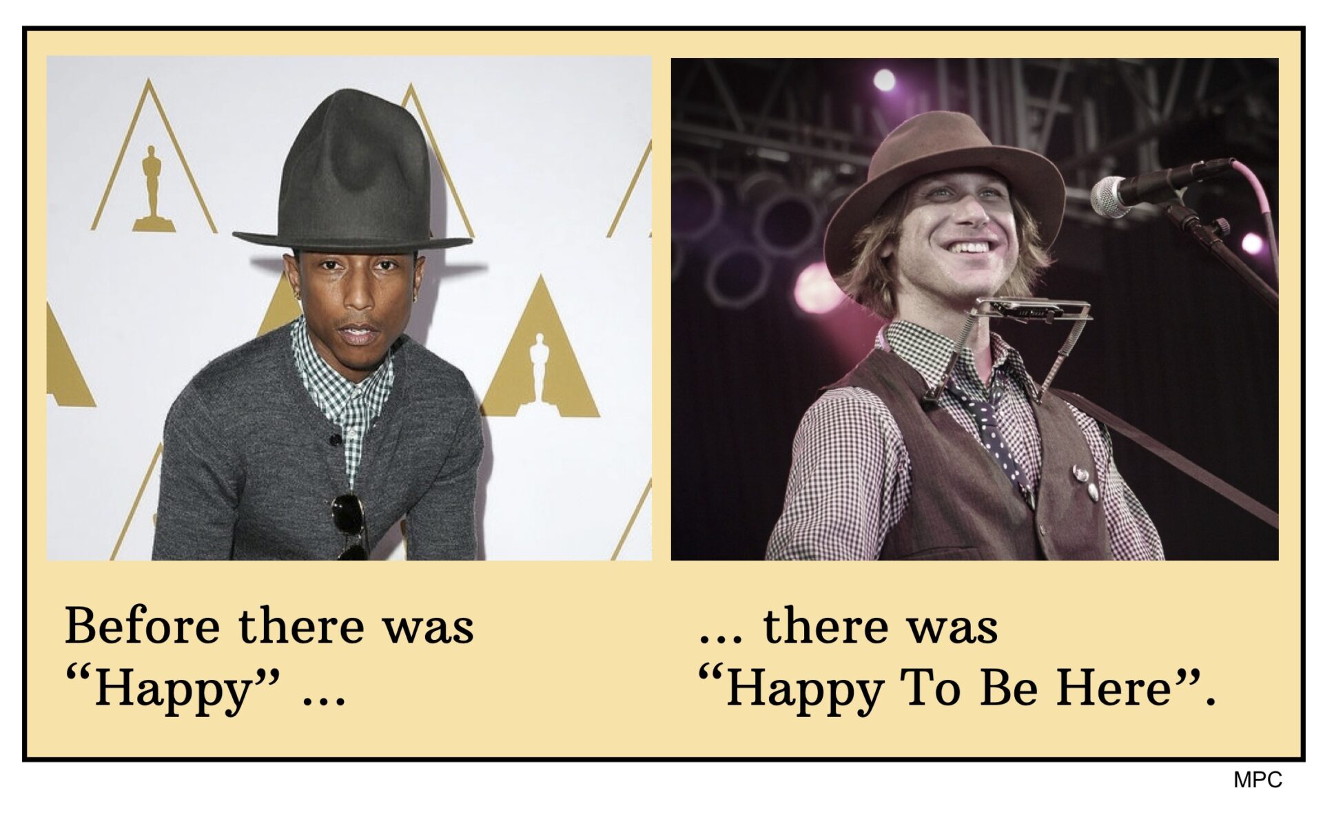 I heard a song called “Happy” by Pharrell Williams a few days ago and am now informed it is all the rage. I also heard some chatter about a weird hat Pharrell has been sporting. Some were calling it “an Arby’s hat” or a bent-up Canadian mounted police lid. Either way, my first thought is that he’s kind of ripping off the trademark big, battered fedora favored by Todd Snider for the last several years.