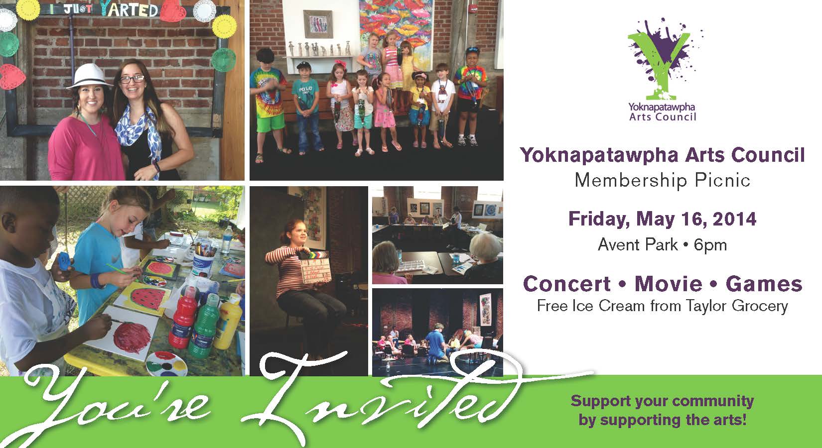The Yoknapatawpha Arts Council will host its annual picnic on Friday, May 16, at Avent Park starting at 6 p.m. The annual event kicks off the summer season of arts programming for YAC.