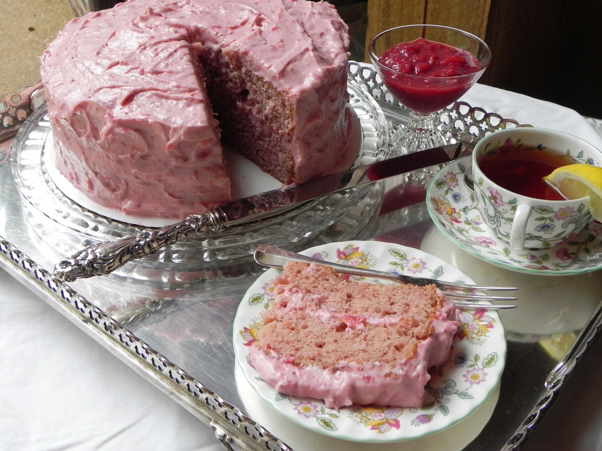 VARIATIONS: For a more moist cake, pierce entire top of each layer with toothpick at regular intervals, and skim with a thin layer of whipped cream before slathering with frosting. An alternate frosting would be buttercream frosting made without adding the strawberry preserves.