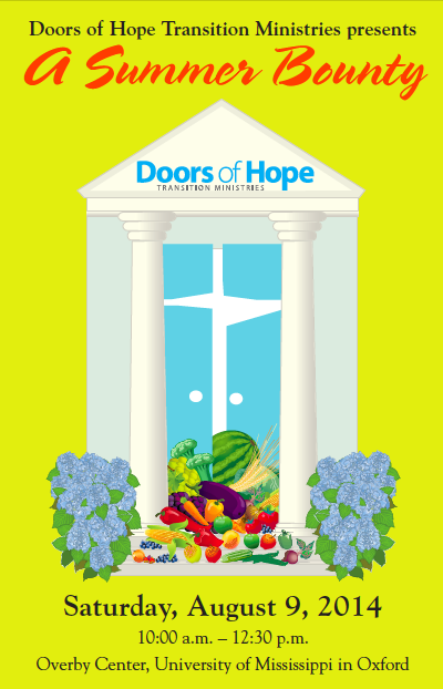 Tickets are $55 each for the program and auction. To order tickets, visit www.brownpapertickets.com and type “A Summer Bounty” on event line, e-mail doorsofhope@bellsouth.net, or call 662-234-1100.