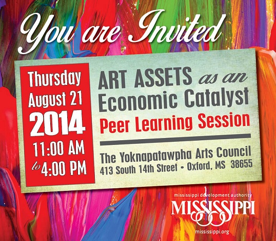 The Mississippi Development Authority, working with the Yoknapatawpha Arts Council, has created a unique economic development workshop focusing on theĀ arts and creative economy. The workshop is a peer learning program that will draw leaders of Arts organizations from across the state for a one day workshop. Instead of a training session, the Development Authority will be asking arts leaders to share their best practices, programs and events that contribute to the cultural inventory of the State and economic development.