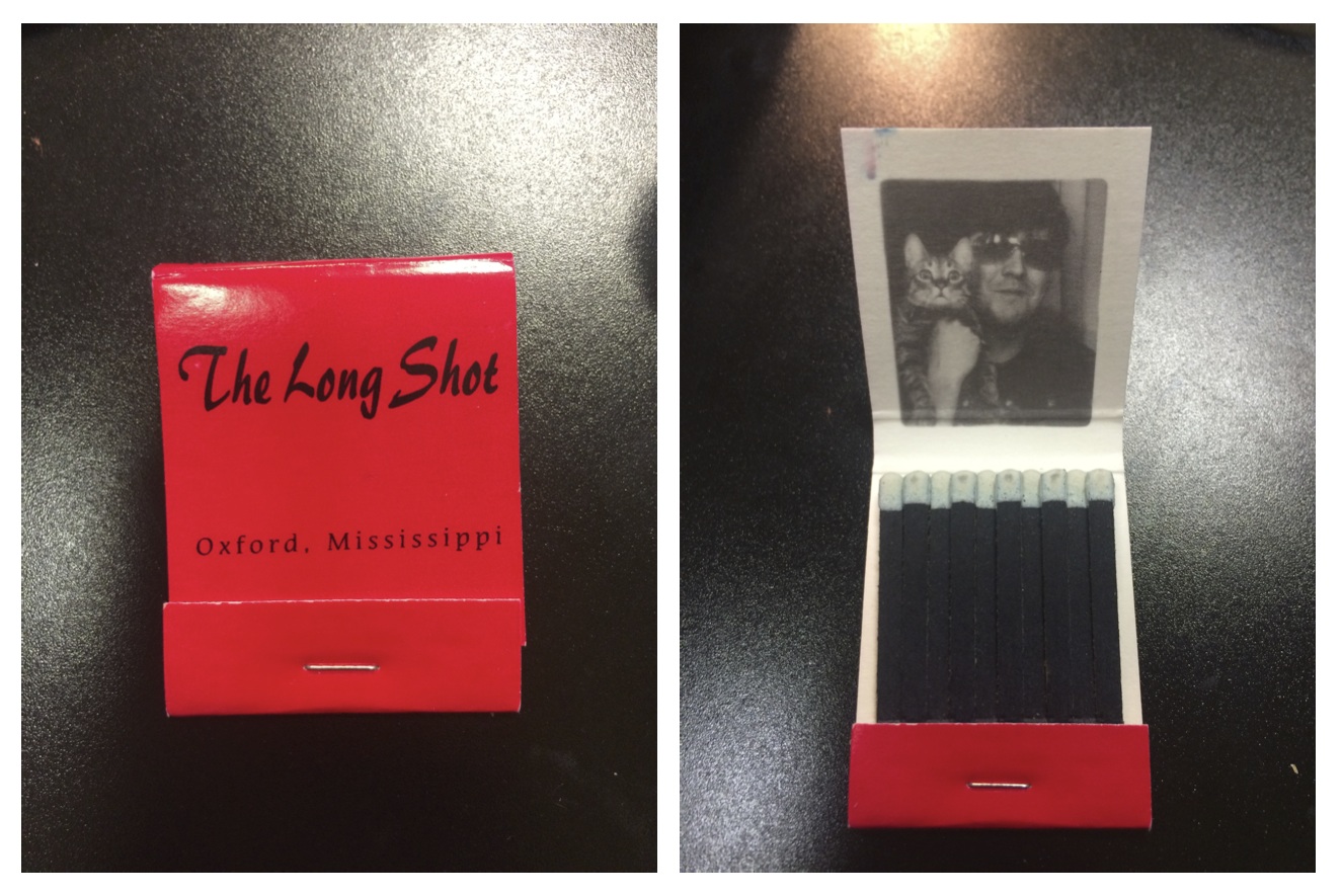 Here’s a like-new, unused matchbook with a photo booth photo of the illustrious Sheldon and his cat inside.