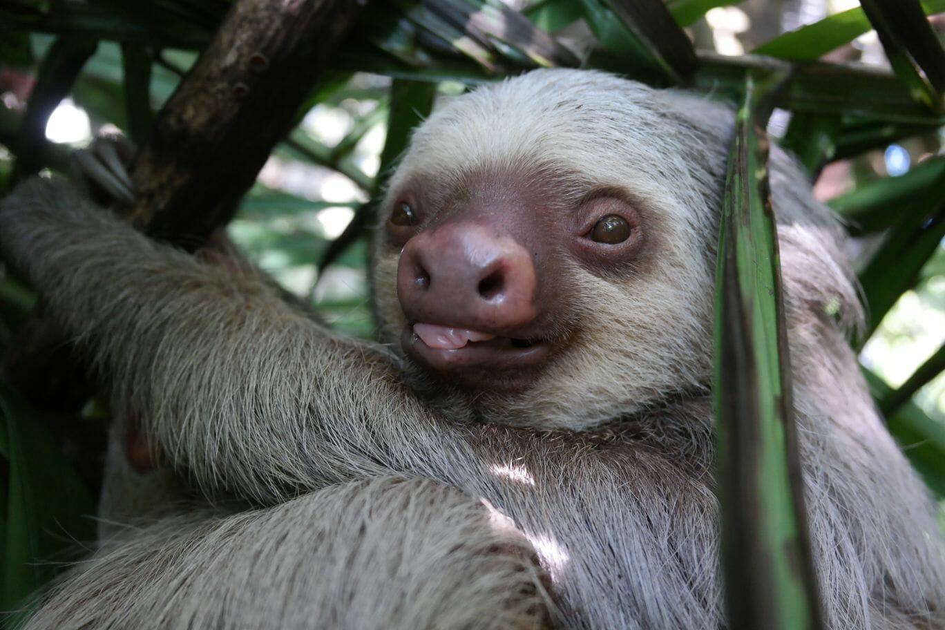 There are actually six different species of sloths, although the two Kaup is researching are both native to Costa Rica. The hair of the sloths has unusual cracks and grooves. Maya is researching whether this cracked hair structure is why sloths have so many microorganisms flourishing in their fur.