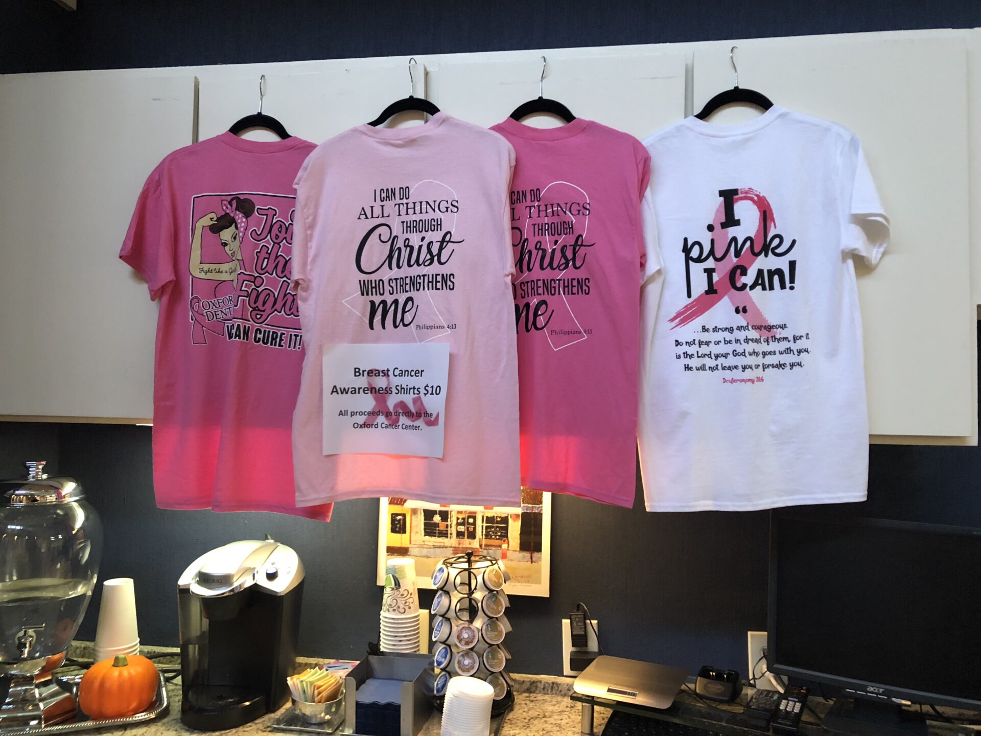 Oxford Dental Clinic’s most recent service endeavor was raising awareness for breast cancer during the month of October. They sold breast cancer awareness T-shirts for $10 each and all proceeds went to the Oxford Cancer Center. On Tuesdays during the month of October, they took the characters’ advice from the movie “Mean Girls” and wore their pink breast cancer awareness T-shirts with pride.