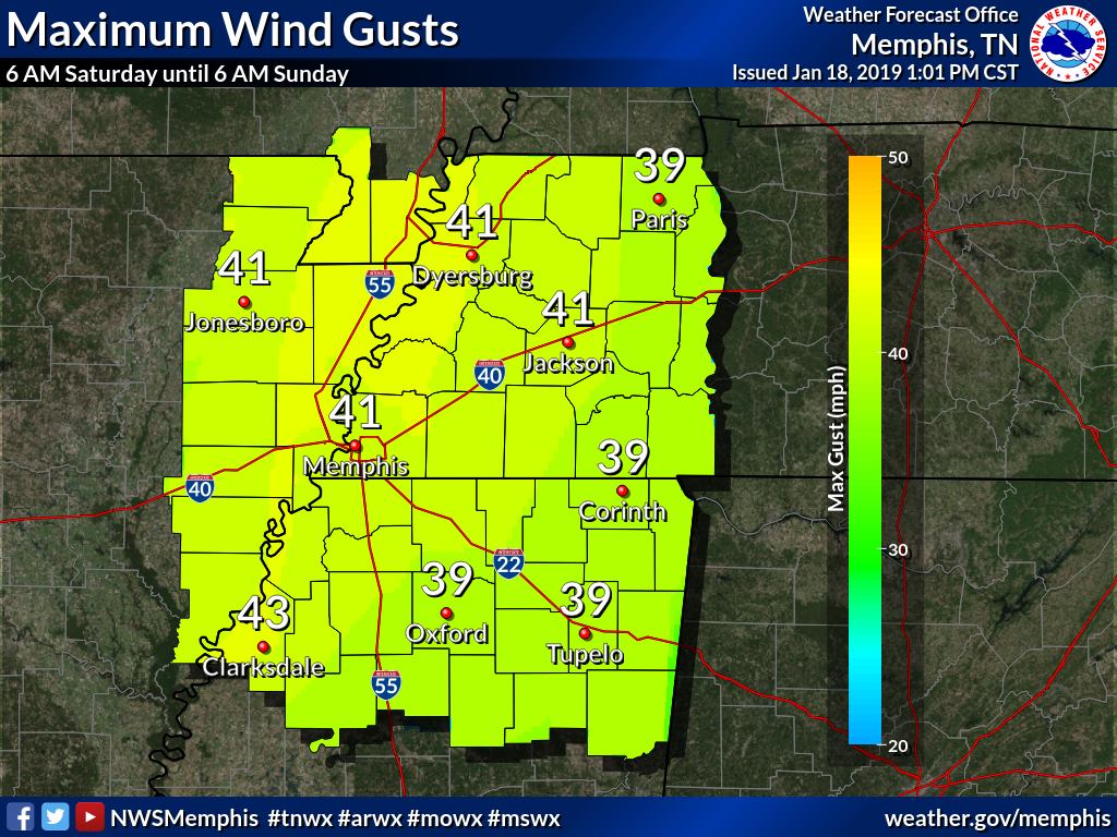 The National Weather Service in Memphis has issued a Wind Advisory for most of north Mississippi including Oxford and Lafayette County, which is in effect from noon Saturday to 3 a.m. Sunday.