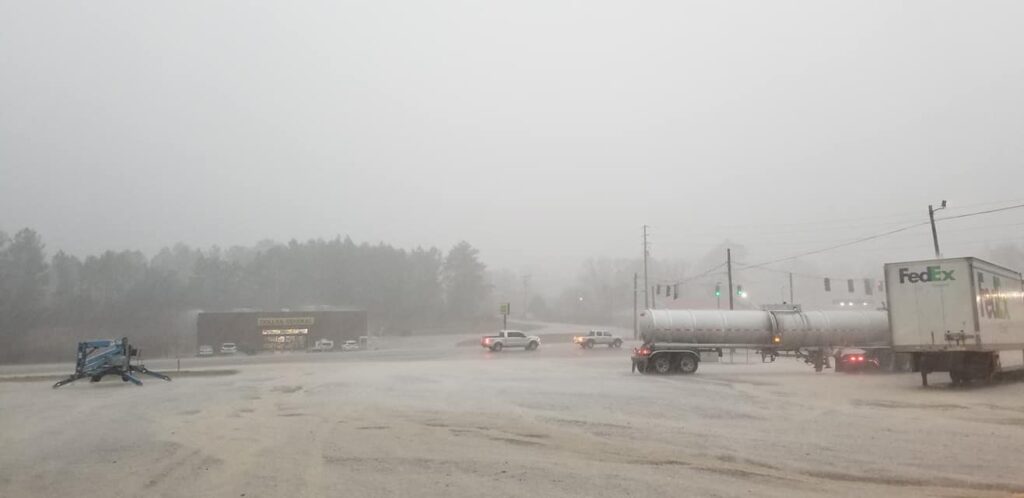 The area near Littlejohn’s Quick Stop during a storm Monday afternoon.