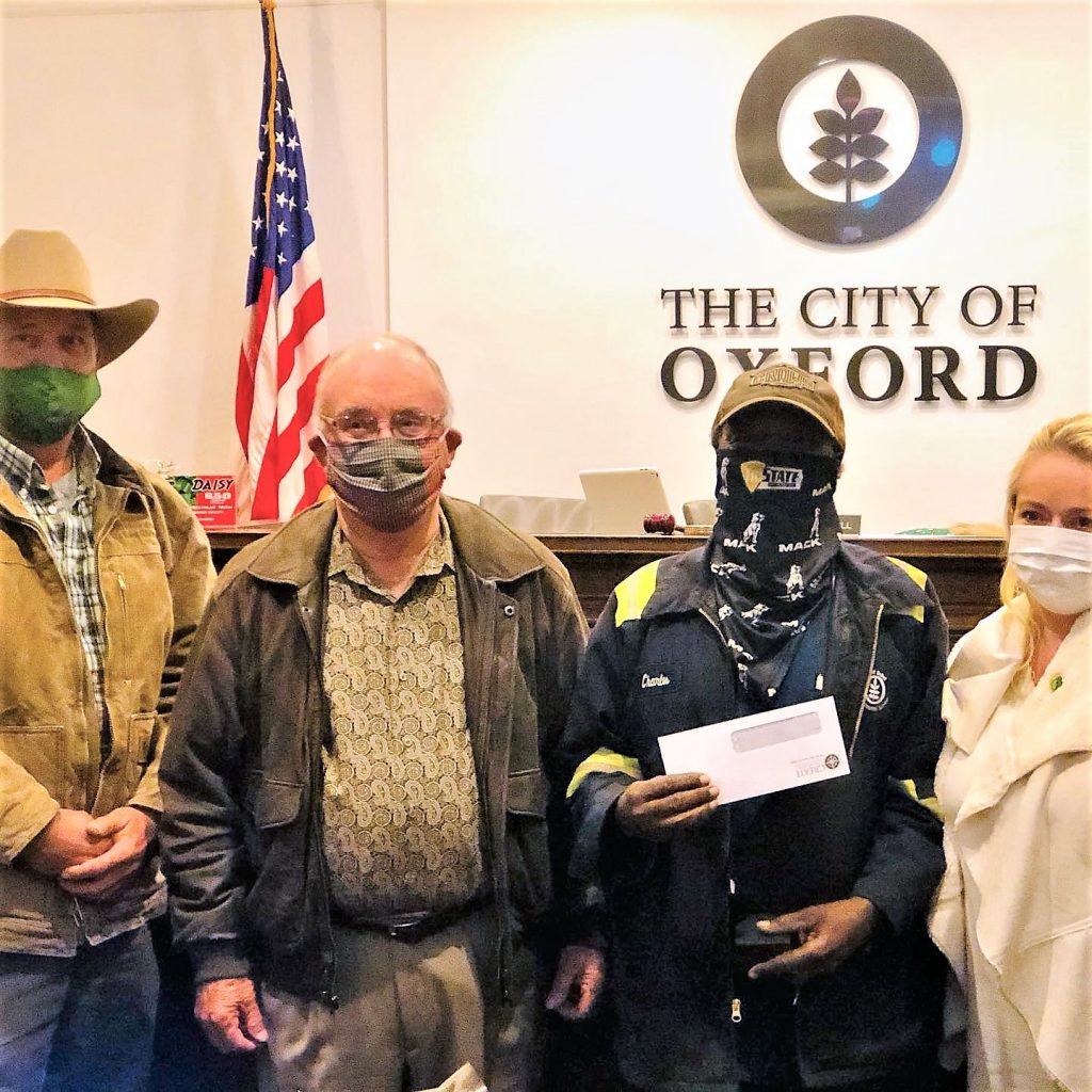 He received a check for $1,000, a certificate and his name added to the growing list of award recipients Tuesday at the Oxford Board of Aldermen meeting.
