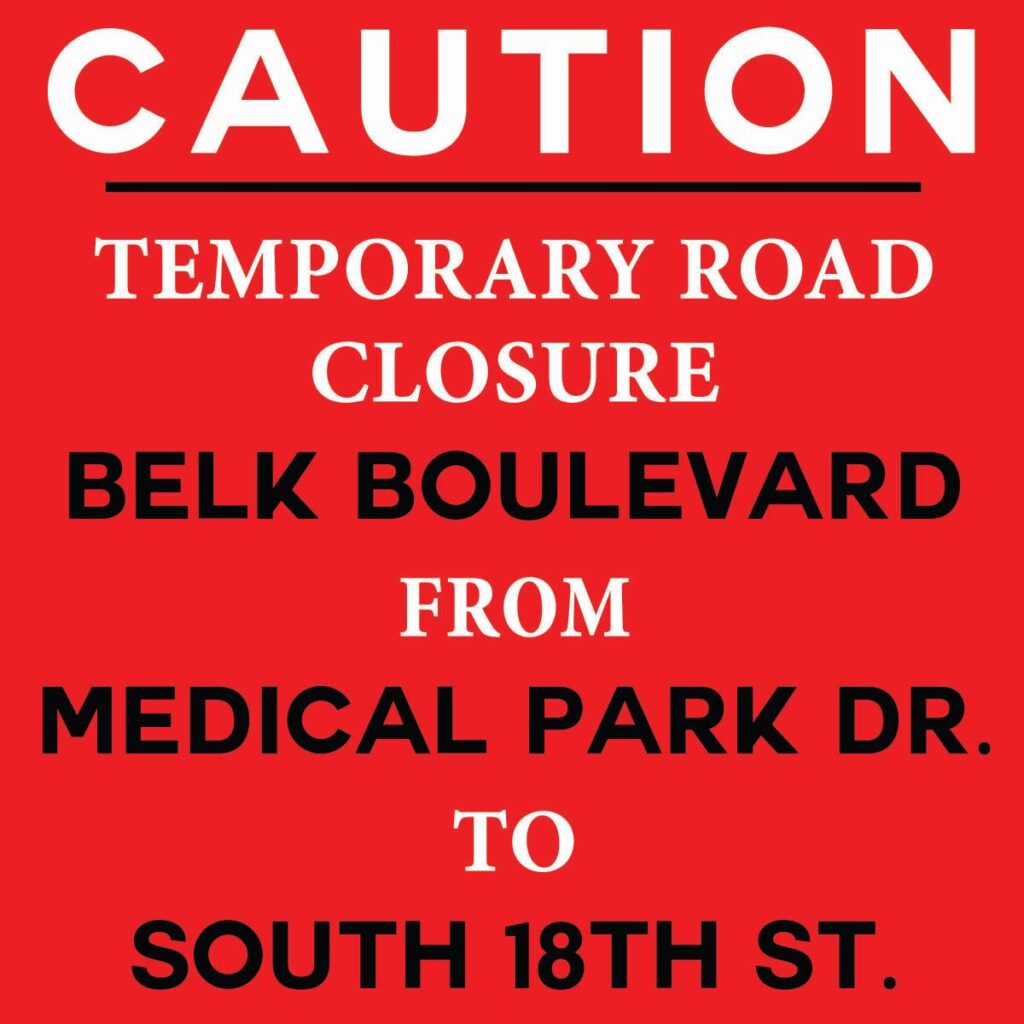The city has begun closing roads to allow crews safe access. Currently, Belk Boulevard from Medical Park Drive to South 18th Street is closed.
