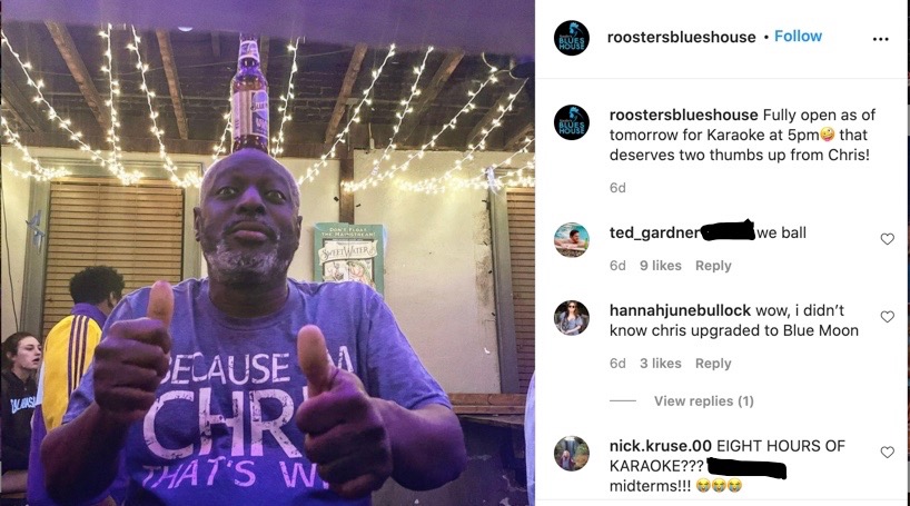 Rooftop Bar “Roosters” posted on Instagram stating, “Fully open as of tomorrow… come hang with us until 1:00 a.m.”