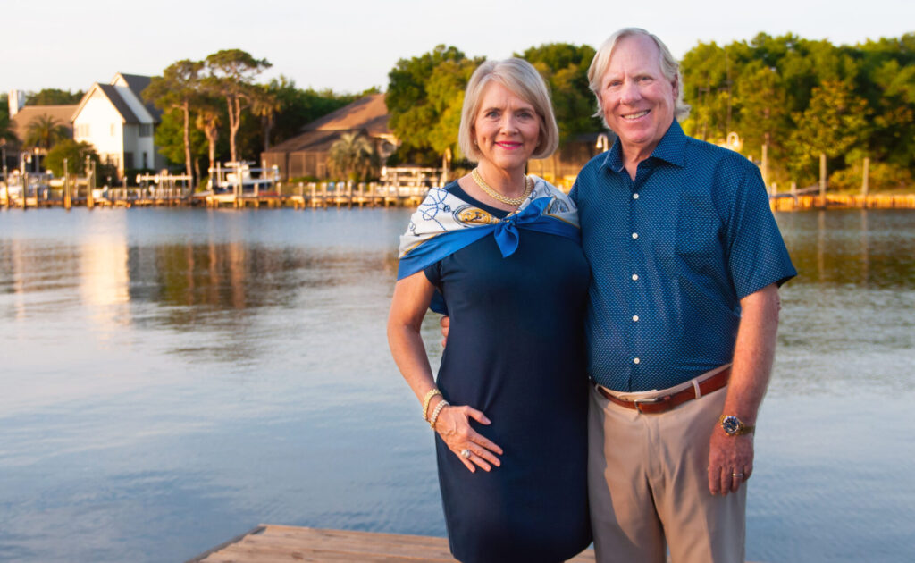 Lynne and Sam Millette enjoy a sunset from the boat dock of their Destin, Florida, home. The couple’s gift to Ole Miss athletics will support Manning Center improvements. Photo by Wren Dabney/UM Foundation