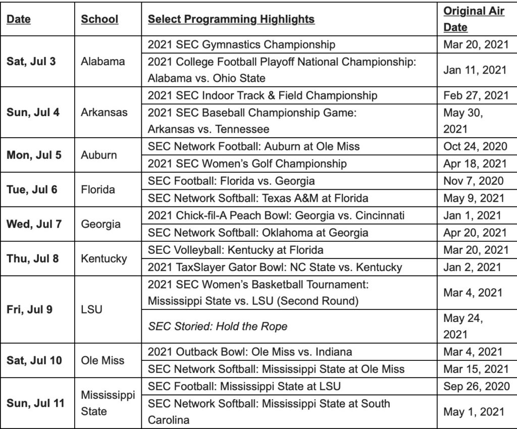 All 14-members of the Southeastern Conference are going to take over the SECNetwork for the next two weeks. The take-over begins on Saturday (July 3) and runs through Friday (July 16).