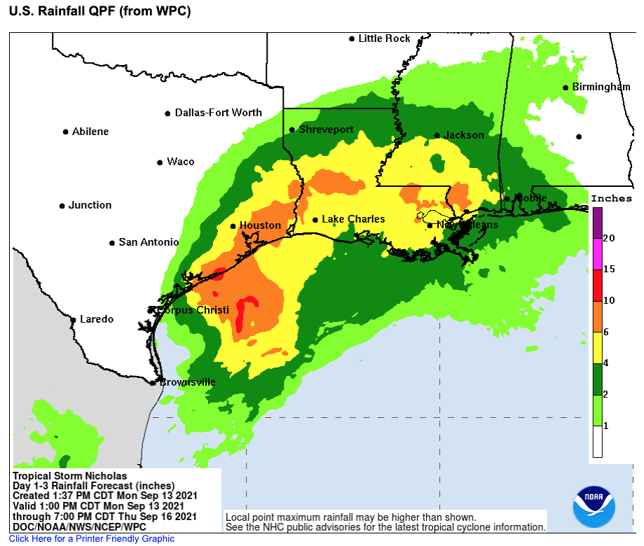 Tropical Storm Nicholas is gaining strength in the western Gulf of Mexico and is forecast to generate significant flooding along the Texas and Louisiana Gulf Coast between Monday and the middle of the week.
