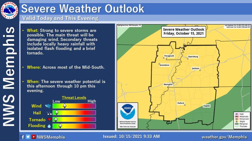 A cold front is pushing through the Mid-South later today and Lafayette County has a slight risk, or 2 on a 0-5 to scale, of severe weather.