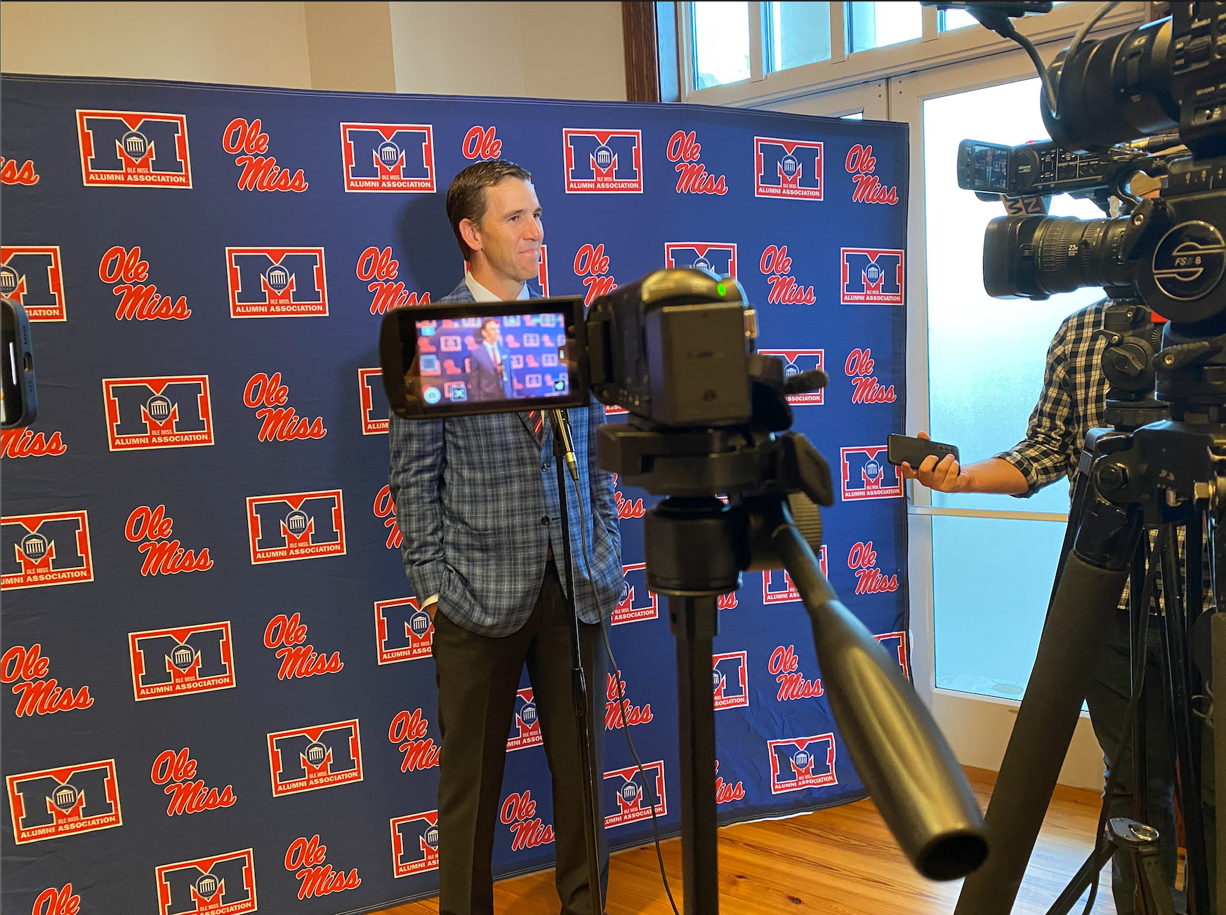 Manning returned to relive his college days at Ole Miss. Sports Illustrated gave me the opportunity to attend his press conference, and I thought it was a very cool opportunity to film and photograph an Ole Miss legend. Not only was I was the only girl in the room, I also was the shortest person there.