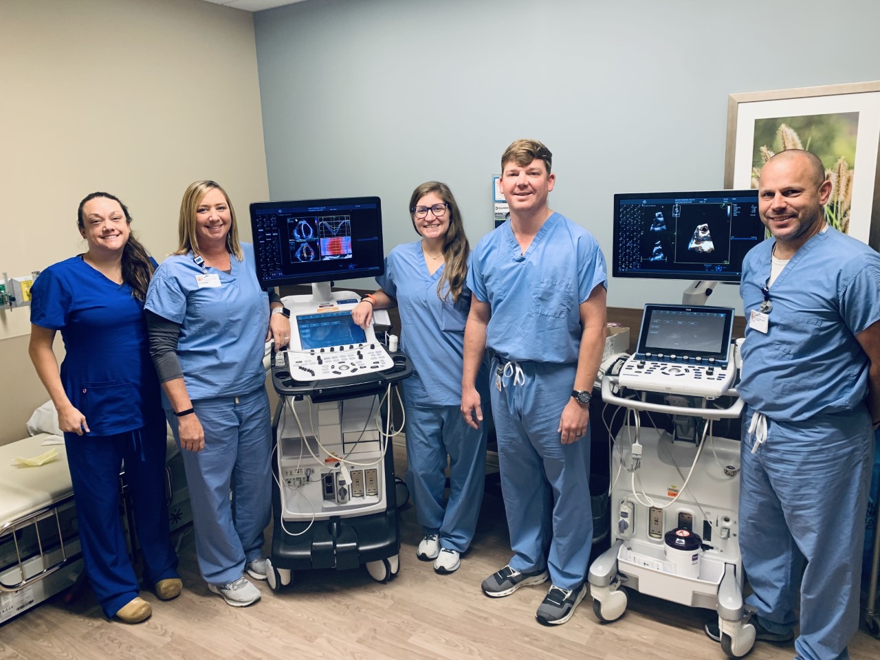 From left: Erin Jackson, Cardiology Nurse Manager; Suzanne Roberts, RDCS-Lead Echo Sonographer; Hannah Odom, RDCS; Andrew Jobe, RCS; and David Martin, RDCS. Photo provided