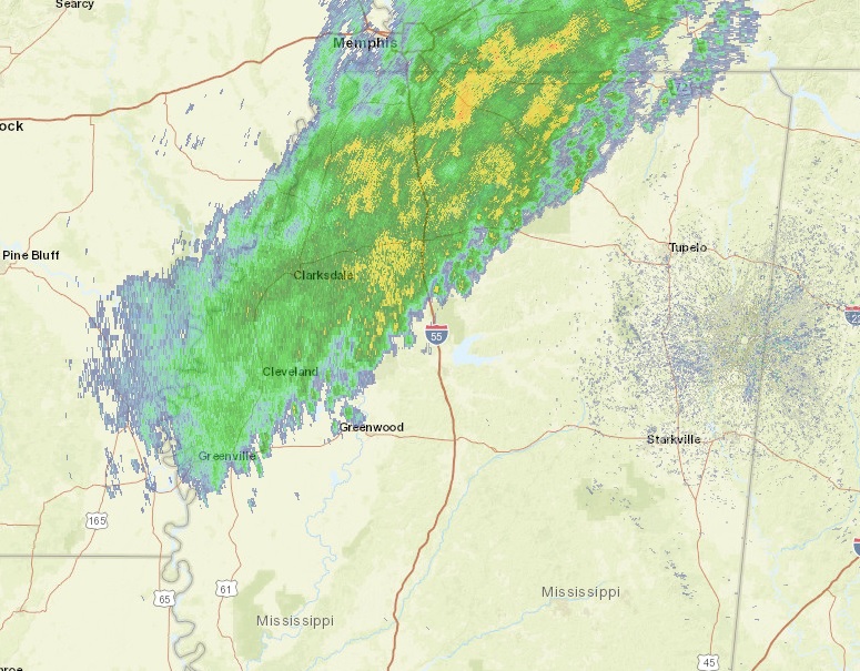 Showers are expected to continue until about 3 p.m. and then start moving east, headed toward Starville, where the Ole Miss Rebels will be facing Mississippi State at the Davis Wade Stadium for the annual Egg Bowl.