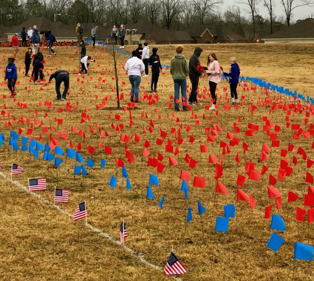 More than 100 Oxford High students began their week by placing 3,500 flags on the front lawn of Oxford High School in observance of the 80th anniversary of the Pearl Harbor attack.