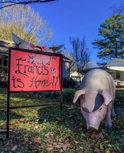 In November, Francis was stolen from his home at night; however, he was returned about three weeks later when his owner received a message from someone on Instagram who left a clue where to find the pig. The Instagram account was deleted afterward.