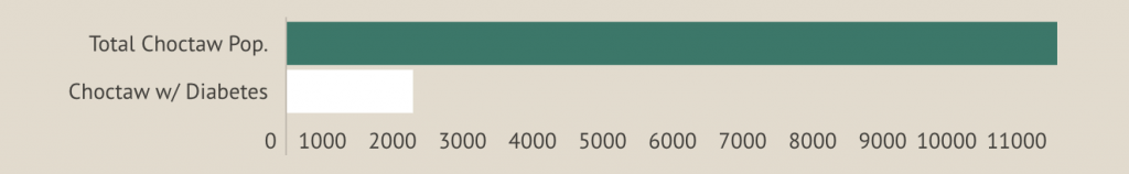 Due to a growing epidemic of diabetes in Native Americans, Congress established the Special Diabetes Program for Indians in 1997, and the Choctaw Health Center follows that program. Type 2 diabetes is prevalent among the Choctaw (close to 1,800 diabetics among 11,000 residents, or over 16%), but moderate diet and exercise can delay and possibly prevent the disease.