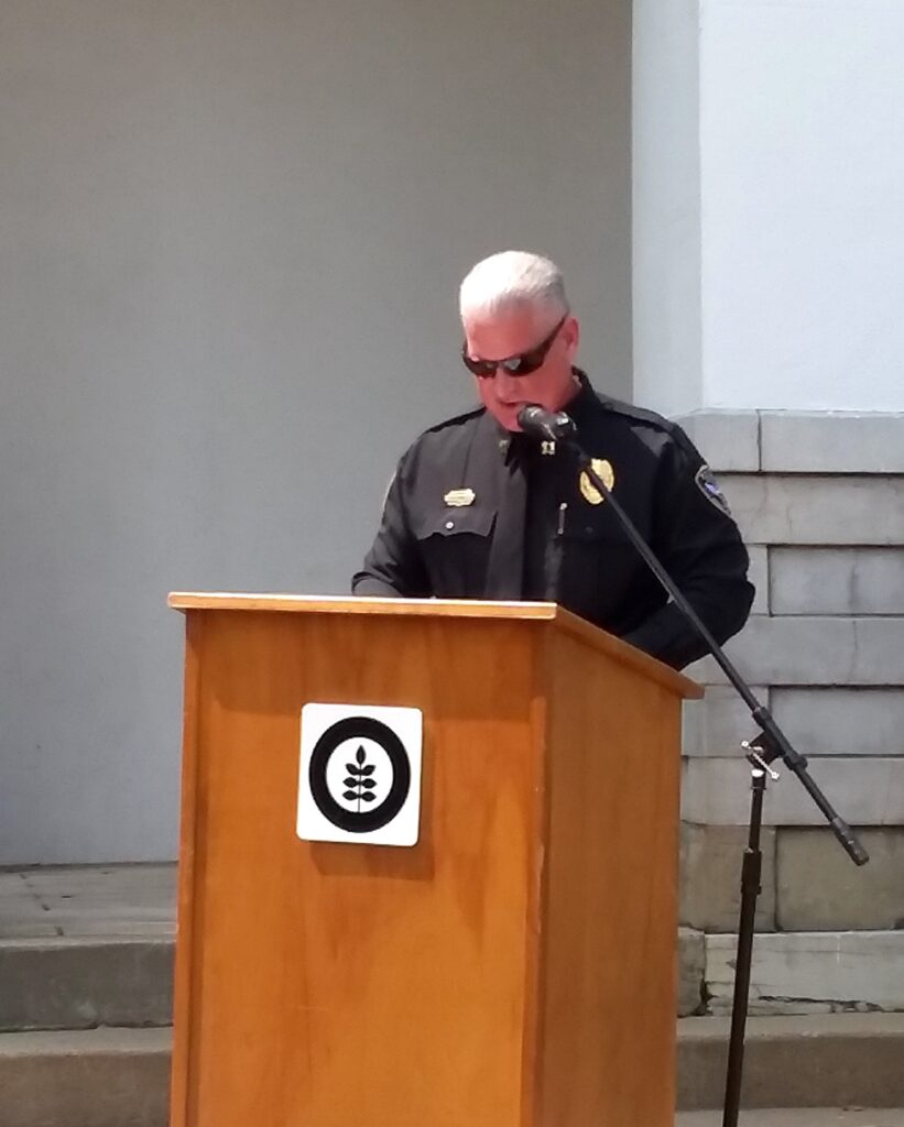 Guest speaker, OPD’s Capt. Donovan Lyons shared with the crowd the story of a dark day in 2002 when his friend and fellow police officer was killed in the line of duty while Lyons worked for the Los Angeles Sheriff’s Department.