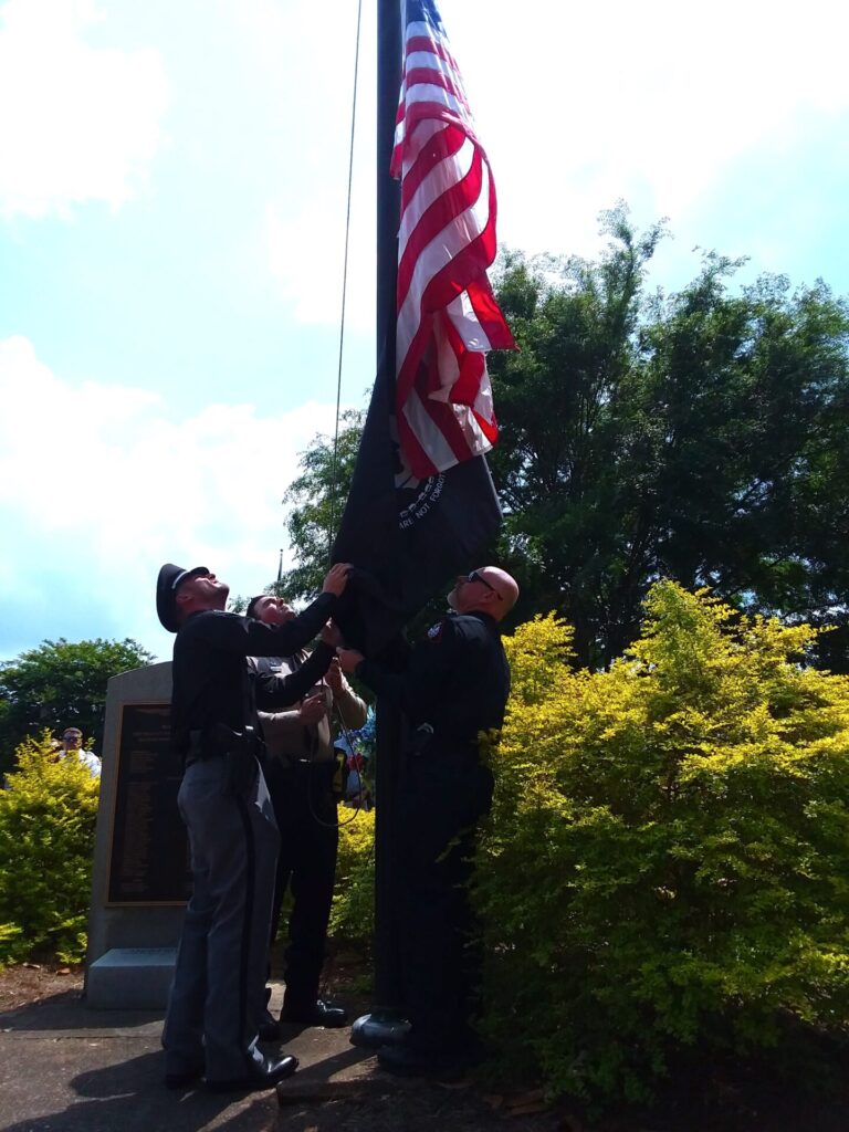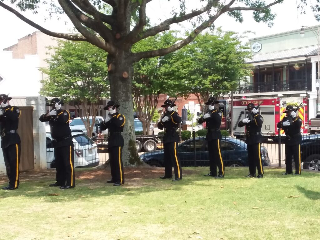 Closing out the program Thursday 21-gun salute by the Oxford Police Department Honor Guard, the lowering of the American flag to half-mast and a Sheriff Joey East placing a memorial flower reef near the Law Enforcement Memorial Marker.