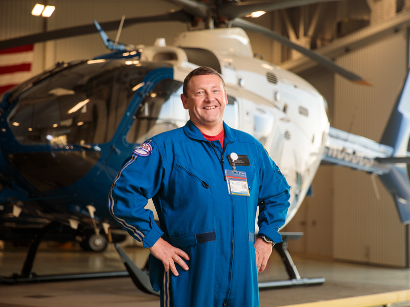 Dr. Chet Shermer, professor of emergency medicine and AirCare’s medical director, has seen Sullivan at work for the past eight years. When AirCare brings in a patient, the flight crew rolls them into the Emergency Department and personally transitions their care.