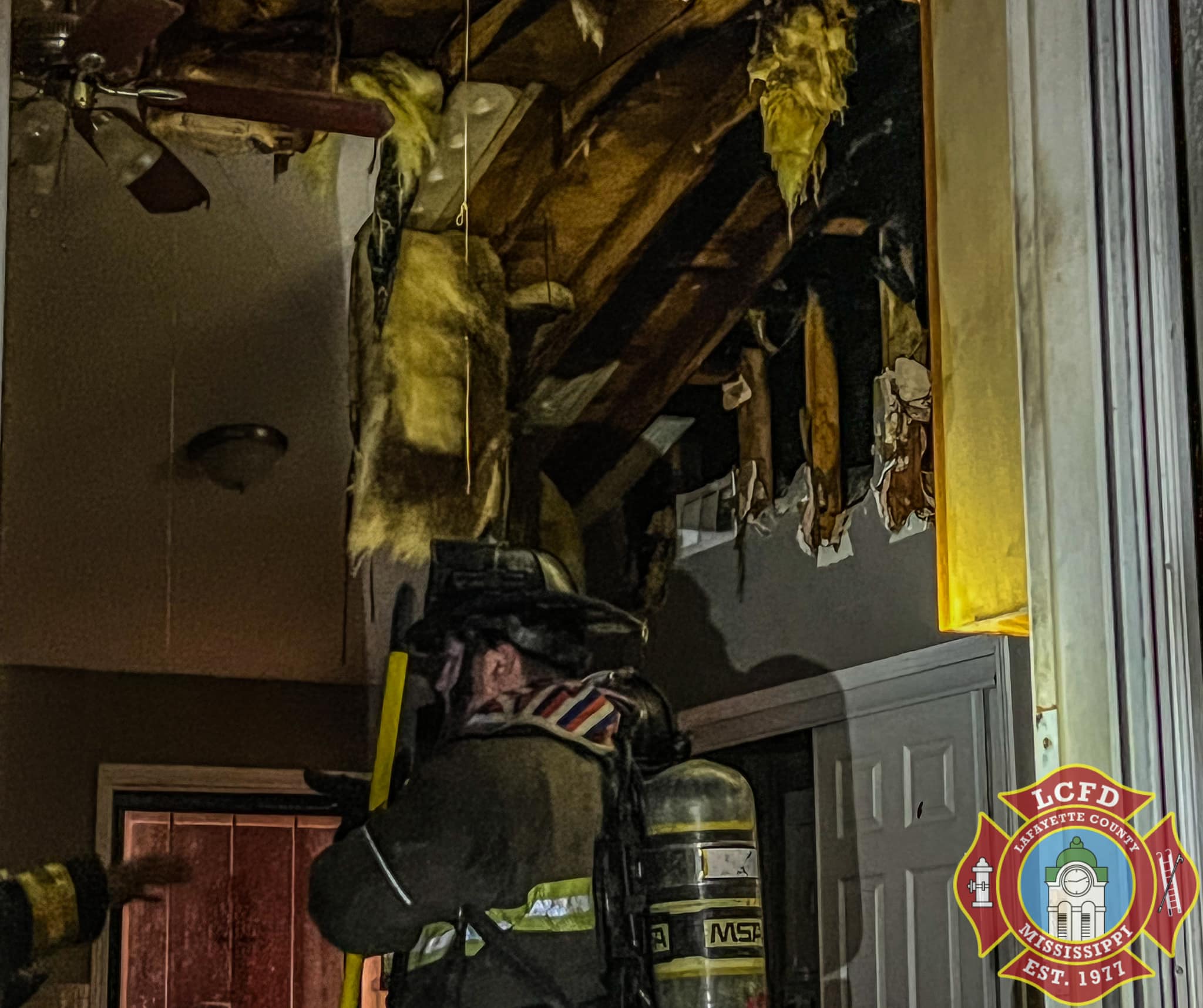 The Lafayette County Fire Department battled a house fire caused by lightning Tuesday night.