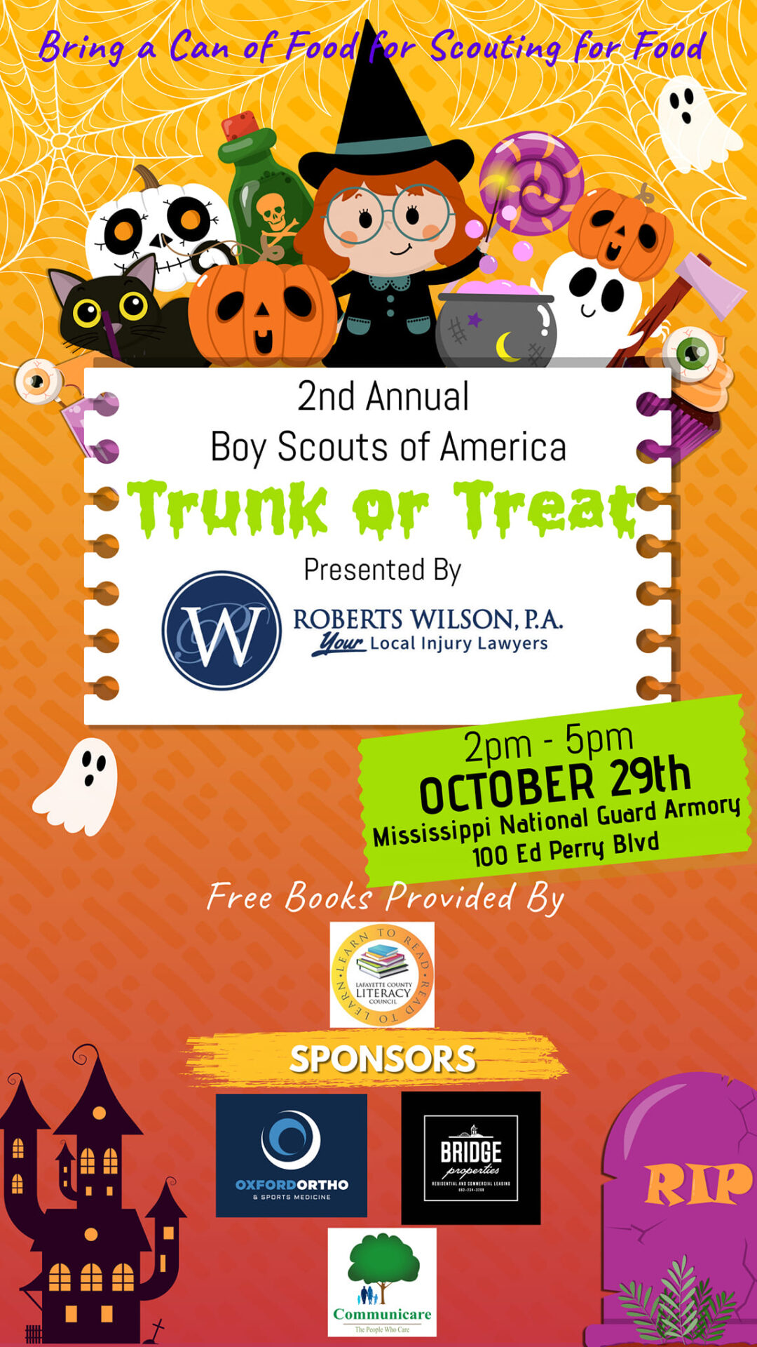 2-5 p.m. Boy Scouts of America Trunk or Treat at Mississippi National Guard Armory