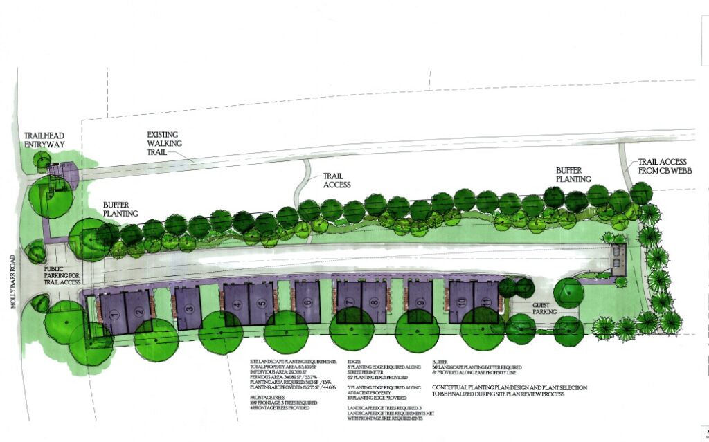 A new proposed development, dubbed Trail Head, on a narrow stretch of land off Molly Barr Road will provide a trailhead entry onto the Depot Trial and a connection to the nearby C.B. Webb apartment complex.