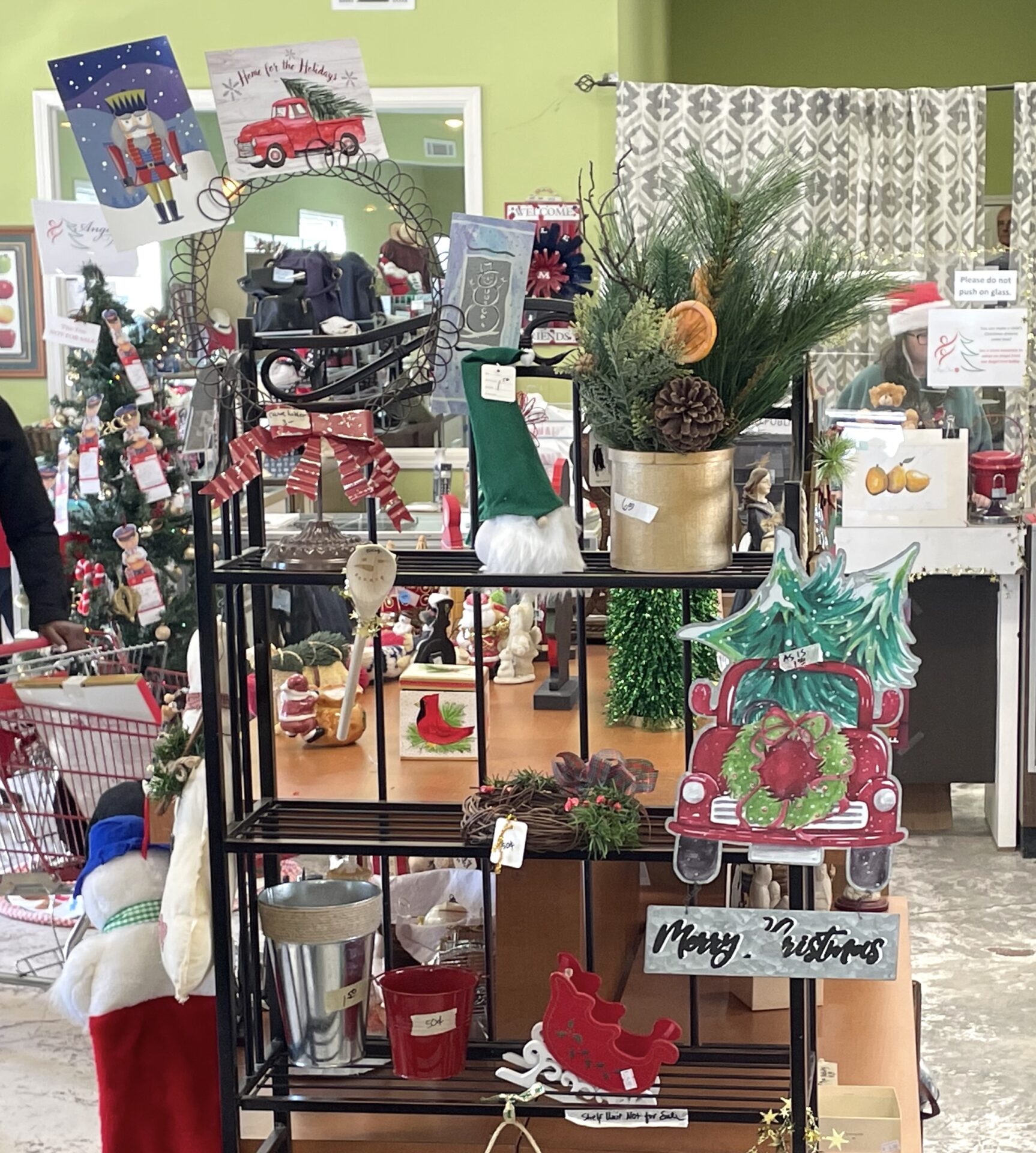 The store had all of its normal stock of clothing and other items, but also a bunch of Christmas decorations, Christmas sweaters, figurines, holiday kitchenware and more.