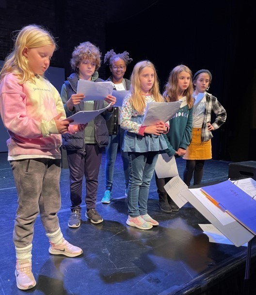Pre-show Elf Ensemble singers rehearse for the opening of Theatre Oxford’s production of โPeppermint Bear.โ Photo by Julie Fanto