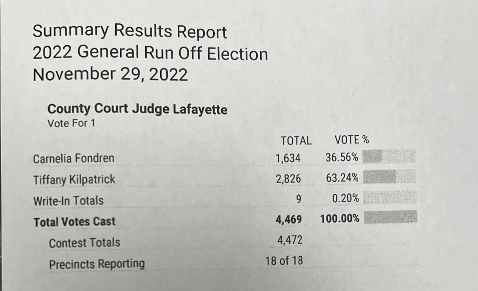 percent of Lafayette County’s 36K+ registered voters cast votes for County Judge.