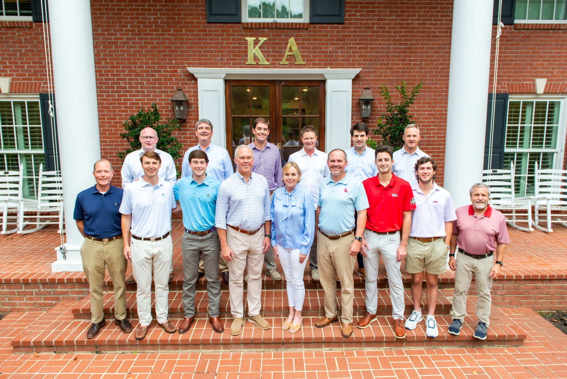 Making a gift to the Thomas Hayes Mayo Lab Endowment at the University of Mississippi are alumni and active members of Kappa Alpha fraternity. Parents Cal and Caroline Mayo (front row, center) are joined by KA alumni and actives (front row, from left) Pope Mallette, Andrew Cofield, Lee Baker, John Mayo, Clay Ivy, Nolan Farmer and Mike McGee; and (back row, from left) Andy Phillips, David Krouse, O’Keefe Graham, Ward Hubbell, Drew Mauldin and Randy Ivy. The KAs have given $35,000 to the Mayo initiative, which will be part of the William Magee Institute for Student Wellbeing. Photo by Bill Dabney/UM Foundation