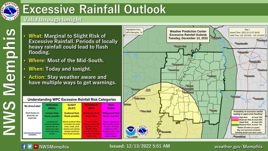 Lafayette County is also in the “slight risk” category for the NWS’s Excessive Rainfall Risk.