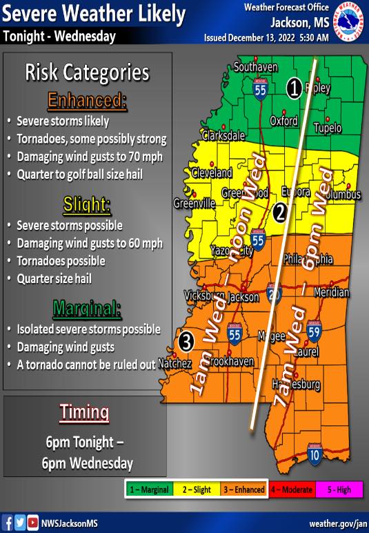 The National Weather Service has placed Lafayette County under a “marginal risk” for isolated severe storms tonight into the overnight hours.