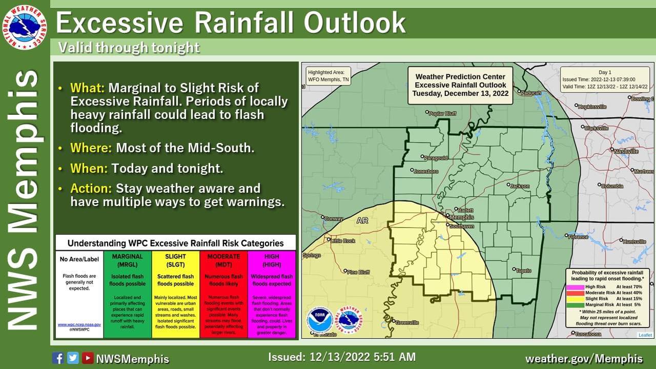Lafayette County is also in the “slight risk” category for the NWS’s Excessive Rainfall Risk.