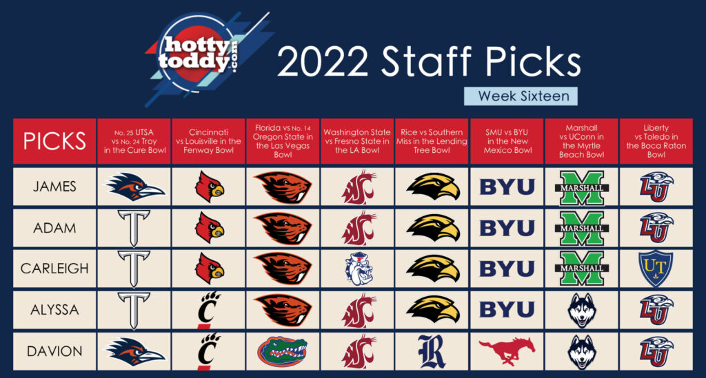HottyToddy.com’s staff is back with picks from a handful of games this week. Publisher/Editor James Dowd, News Editor Alyssa Schnugg, Sports Editor Adam Brown, graduate assistant Carleigh Holt and intern Davion Rosenthall give their choices of winners.