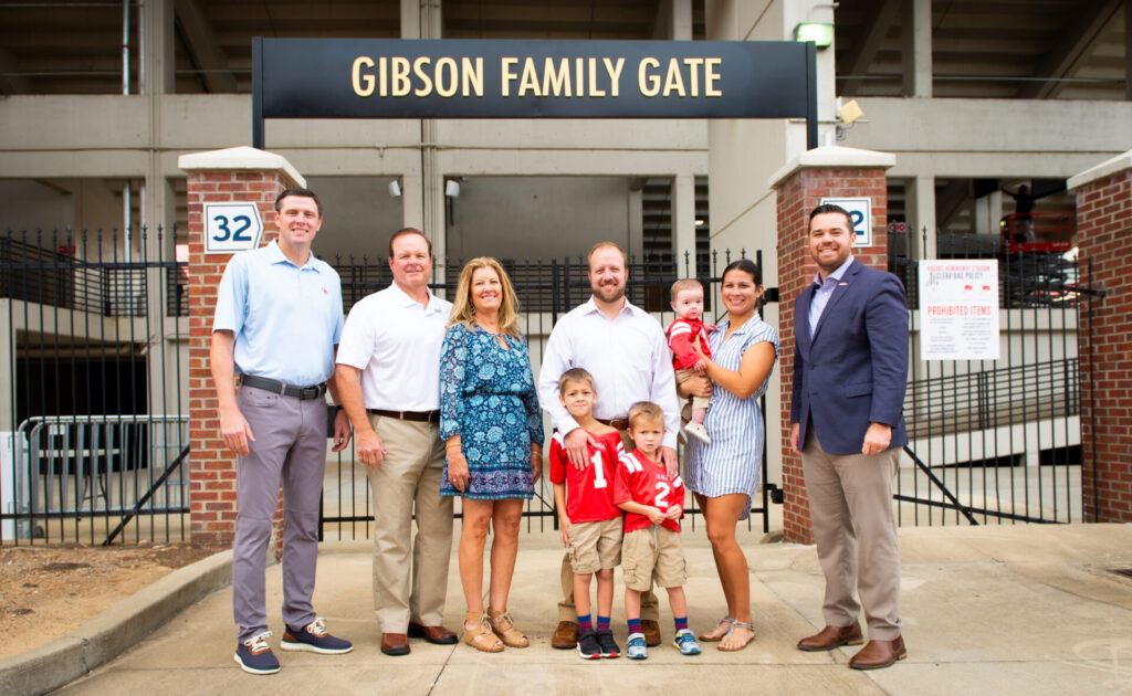 The Gibsons’ gift is part of the Ole Miss Athletics Foundation’s drive to honor donors with naming opportunities for each entrance gate at Vaught-Hemingway Stadium. Naming opportunities remain available for the grand gates at the north, east and west entrances as well as a limited number of individual gates.
