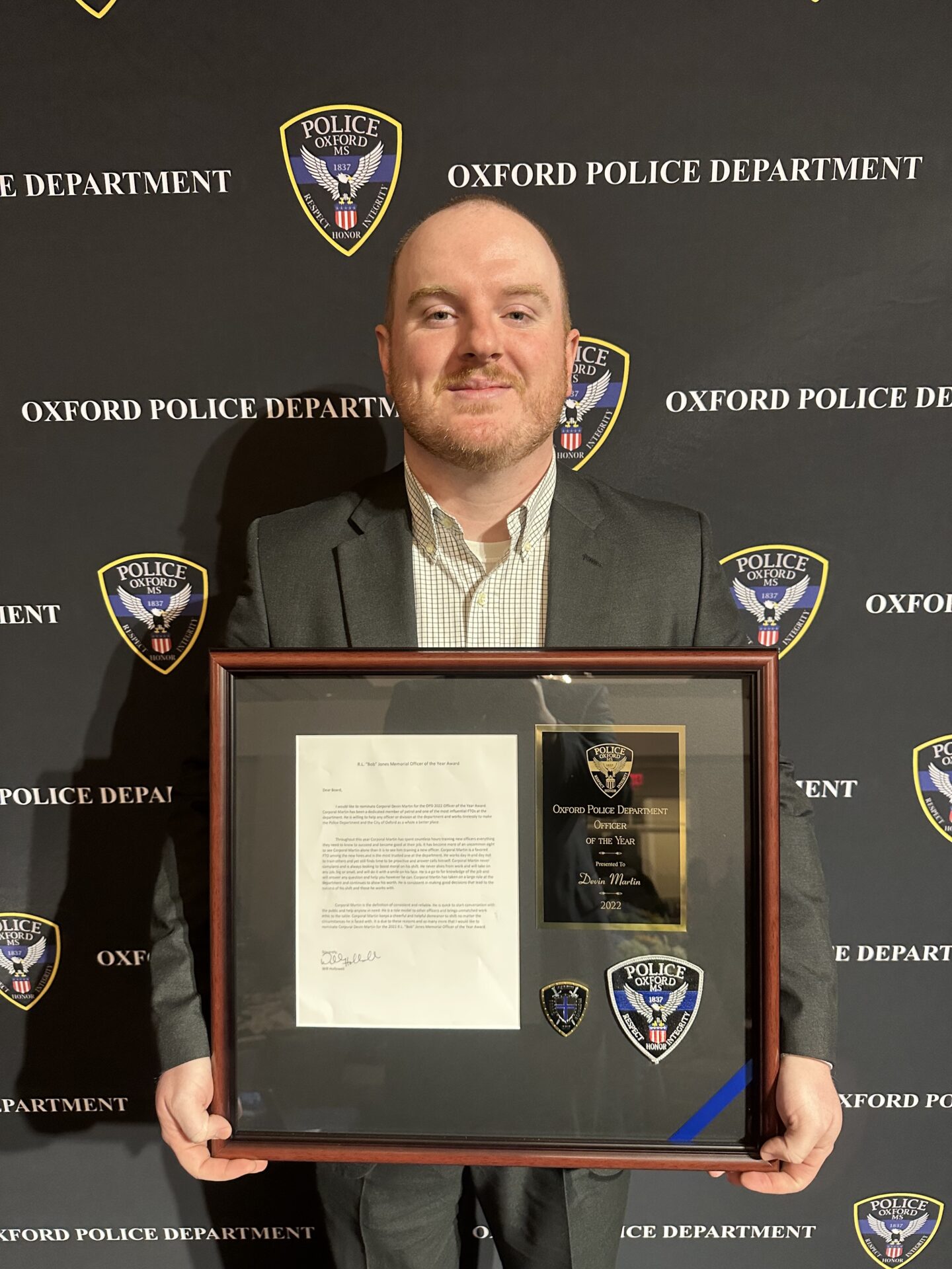 “He’s a good man, a good husband, and father,” McCutchen said. “He cares about people and he cares about doing a good job for the city of Oxford. Devin has faced adversity in his life, yet it has not changed who he is or his priorities. I’m proud to serve with Devin and I’m thankful we have him at OPD.”