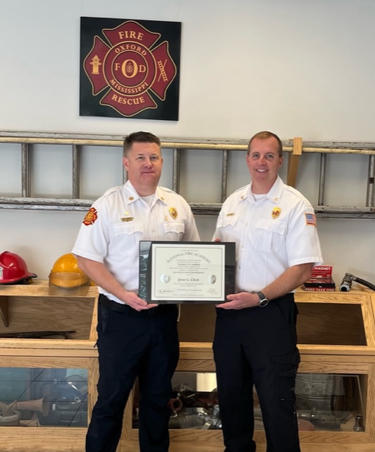 Oxford Fire Department’s Training Chief Jesse Clock was recognized recently for graduating from the Managing Officer Program at the National Fire Academy.