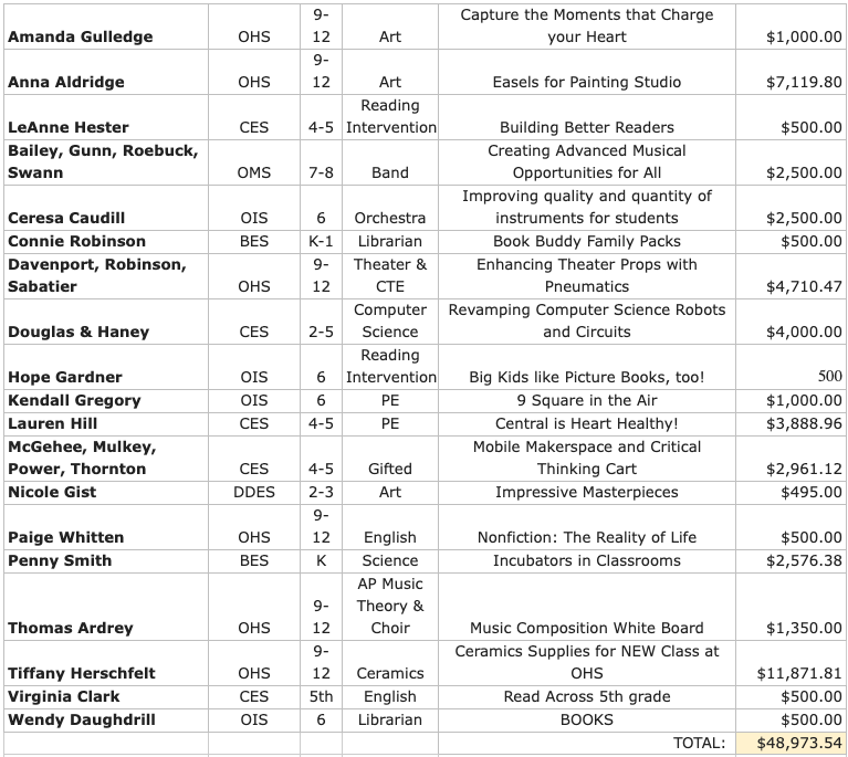The Oxford School District Foundation awarded close to $49,000 in grants this school year.