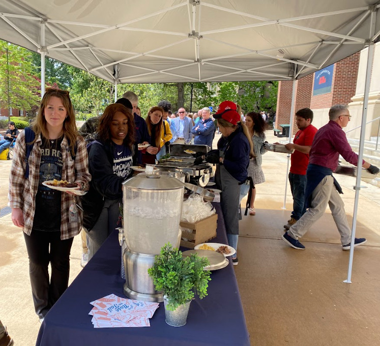 Students, faculty and staff at the University of Mississippi lined up to get a taste of freshly cooked pulled pork Wednesday in front of the Student Union.