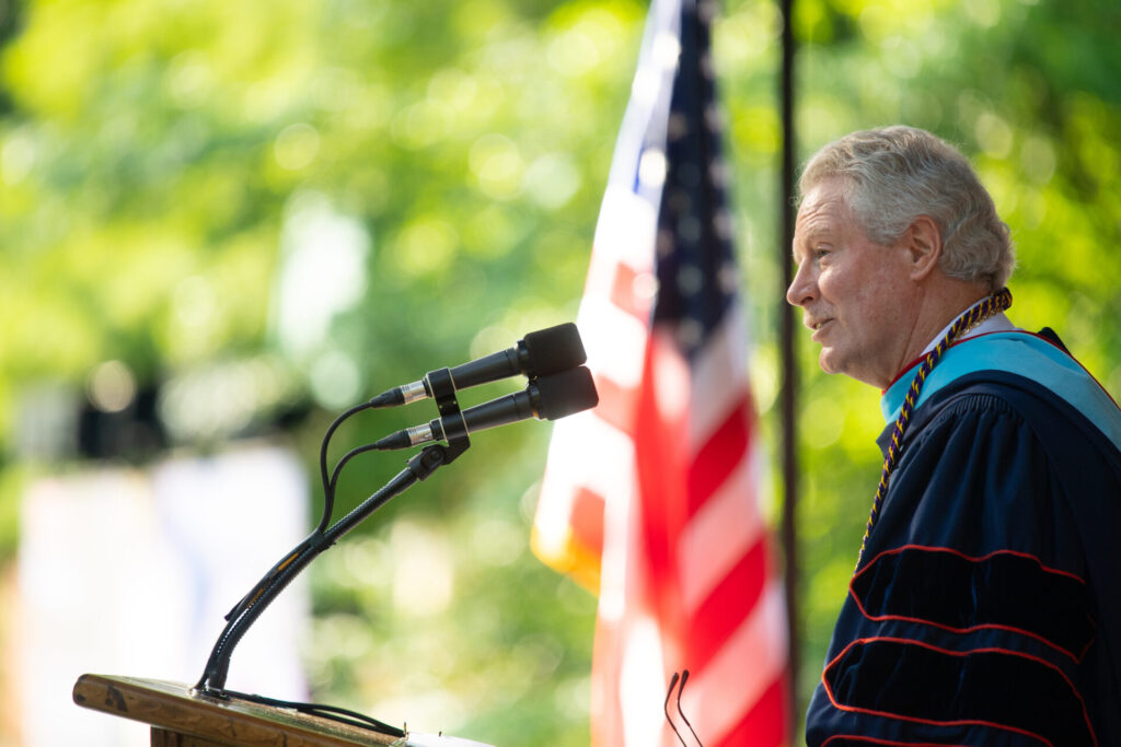 UM Chancellor Glenn Boyce welcomed approximately 6,000 students, family, friends and faculty to the Grove before speaking to the drive and character of the Class of 2023, a class that experienced an unprecedented disruption of their studies due to the COVID-19 pandemic. He praised their resiliency and congratulated them on a job well done in the face of adversity.