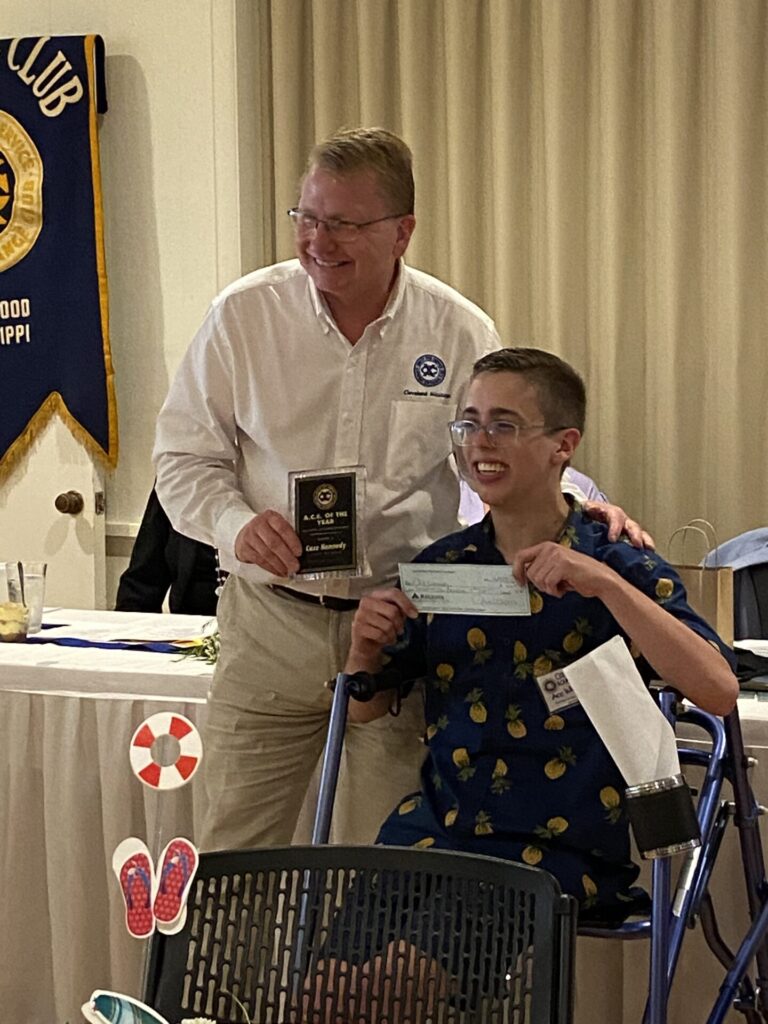 Mississippi District President Kenny Williams of Cleveland presents Case Kennedy with the District Exchange ACE Award.ย