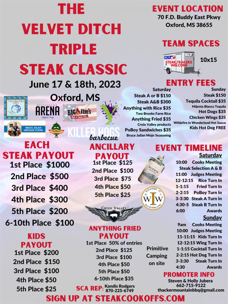 Steak contestants must bring their own grills and supplies for the steaks and ancillaries.