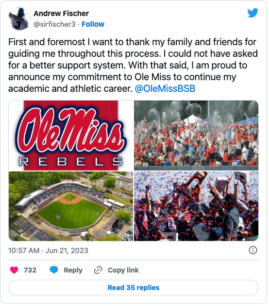 Ole Miss baseball picks up former Duke third baseman Andrew Fischer out of the transfer portal.
